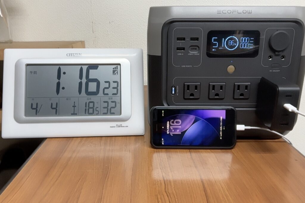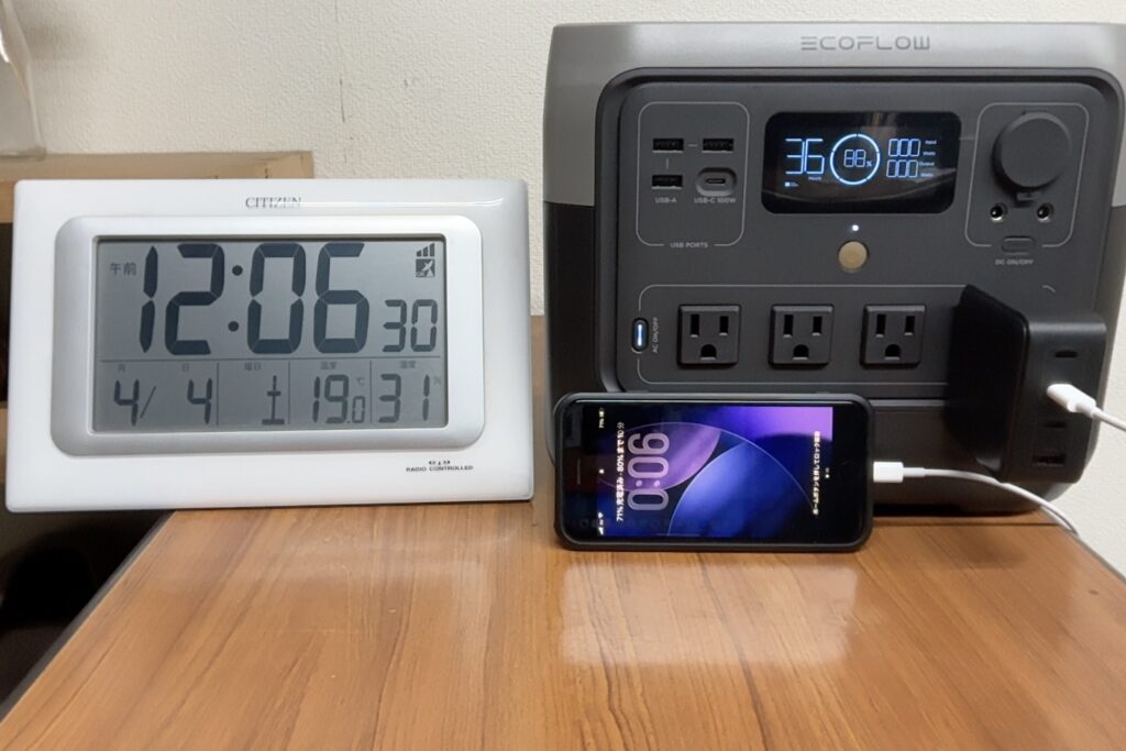 ポータブル電源の残量表示は1%刻みなので細かな誤差がありますし、スマホの機種、ケーブル、画面点灯の有無、バッテリーの劣化具合でも結果は変わります。あくまで実測の一例としてご覧ください。